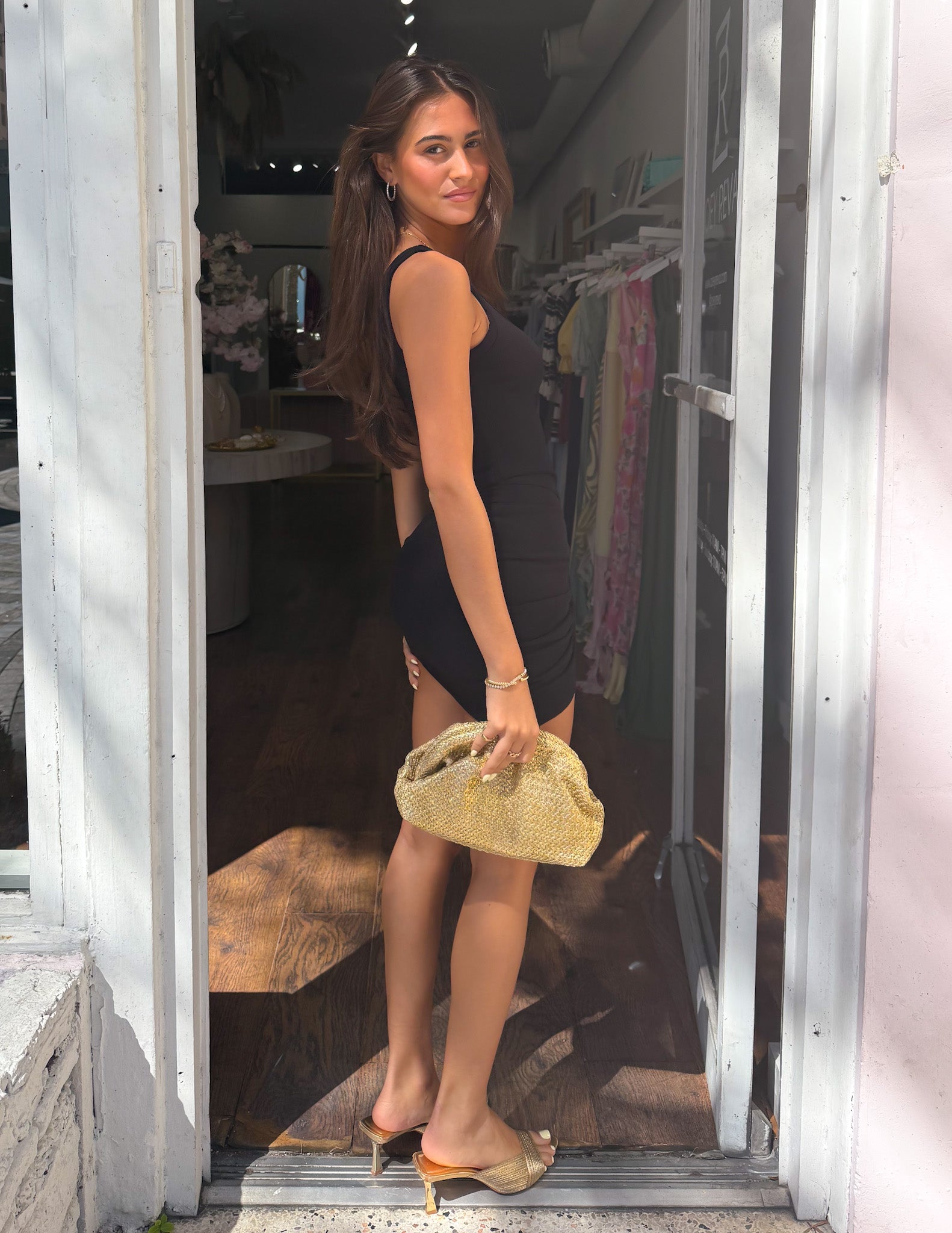 Chelsea Mini Dress $86.00 S - $86.00 M - $86.00 L - $86.00 Quantity This variant is currently sold out Please fill in the form below if you'd like to be notified when it becomes available. DETAILS Black mini dress Round Neck Sleeveless One-Side Tie Runs true to size model is 5'4 wearing a size S Model measurements: Height: 5'4, Waist:24", Hips: 32, Bust: 32B